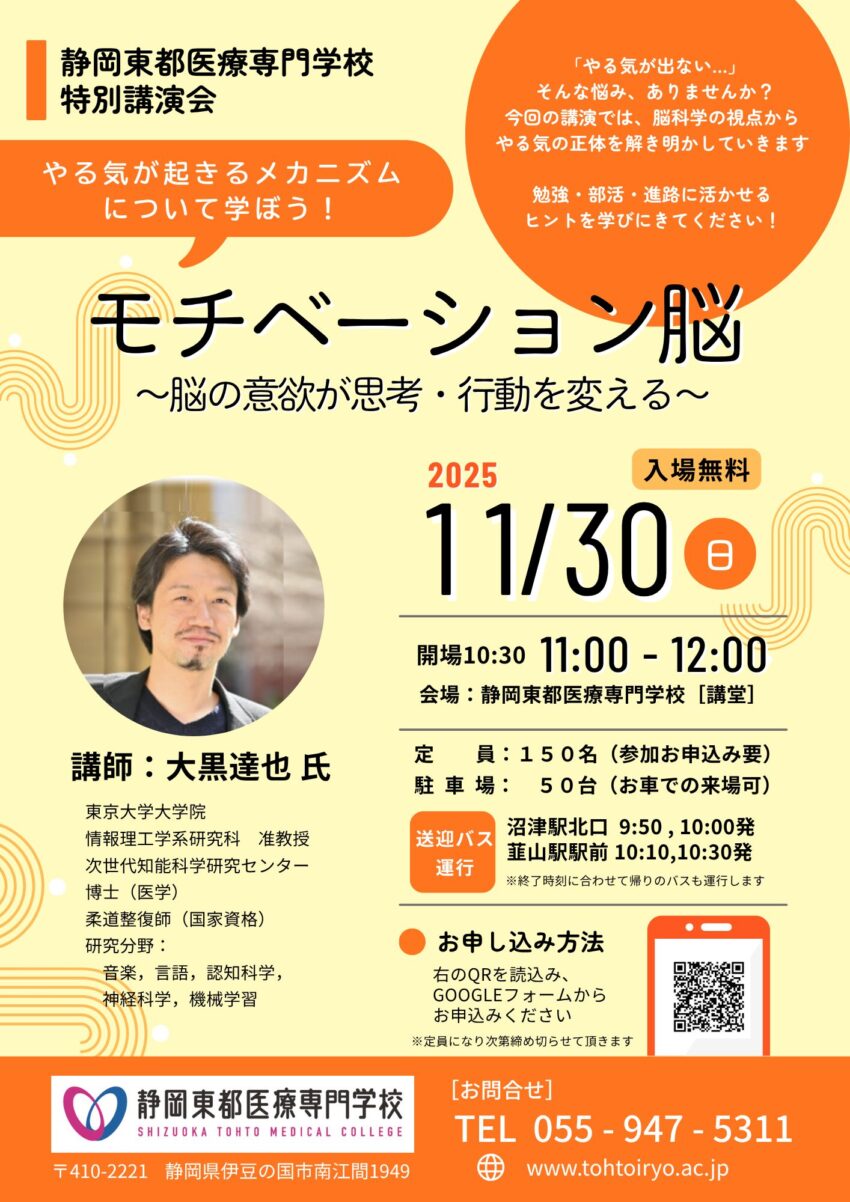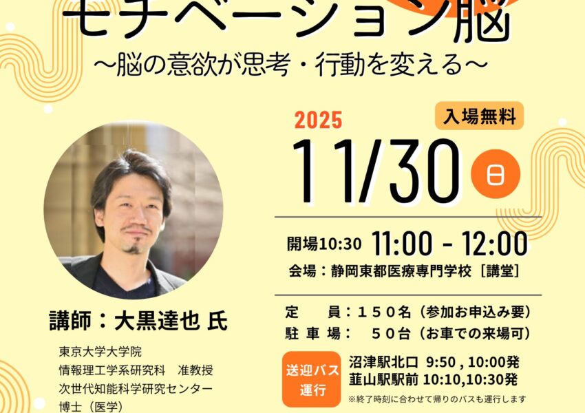 11月30日(日)特別講演会「モチベーション脳」やる気が起きるメカニズムについて学ぼう!
